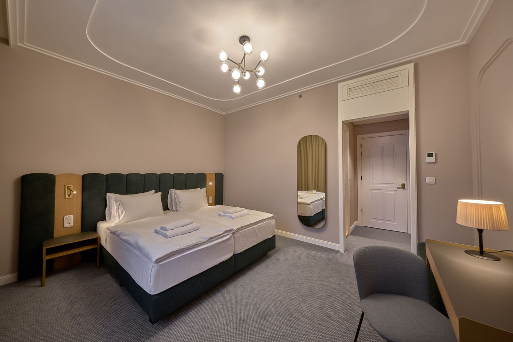 All Deluxe Rooms face the French-style courtyard on Király Street, allowing guests to enjoy the city’s atmosphere, while superior soundproofing ensures peaceful relaxation.