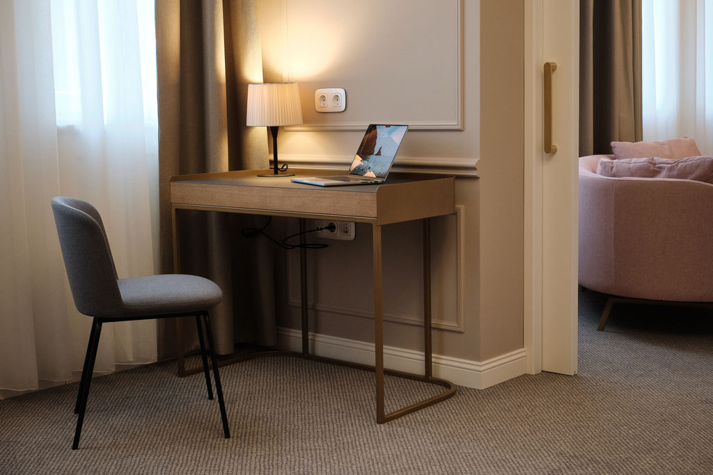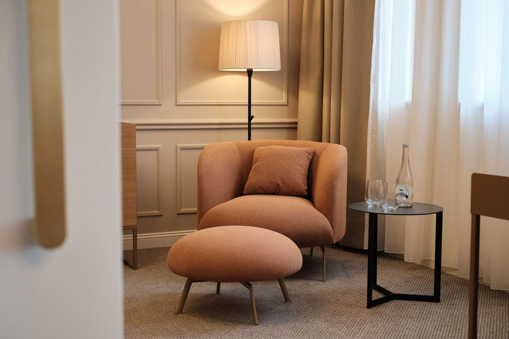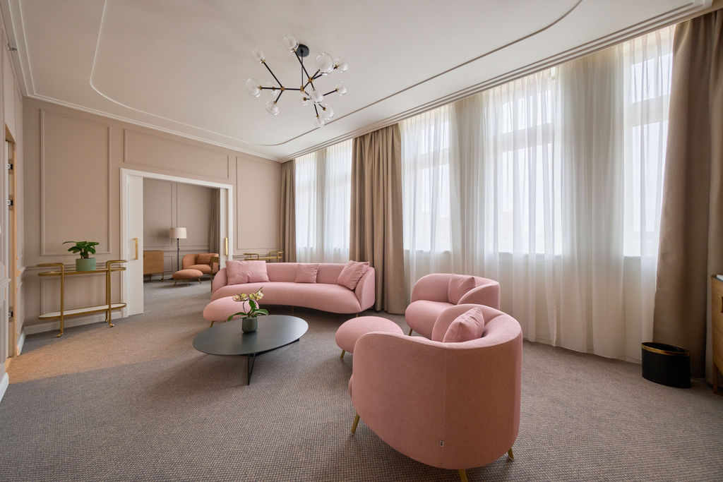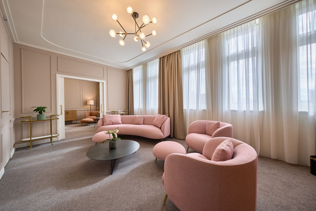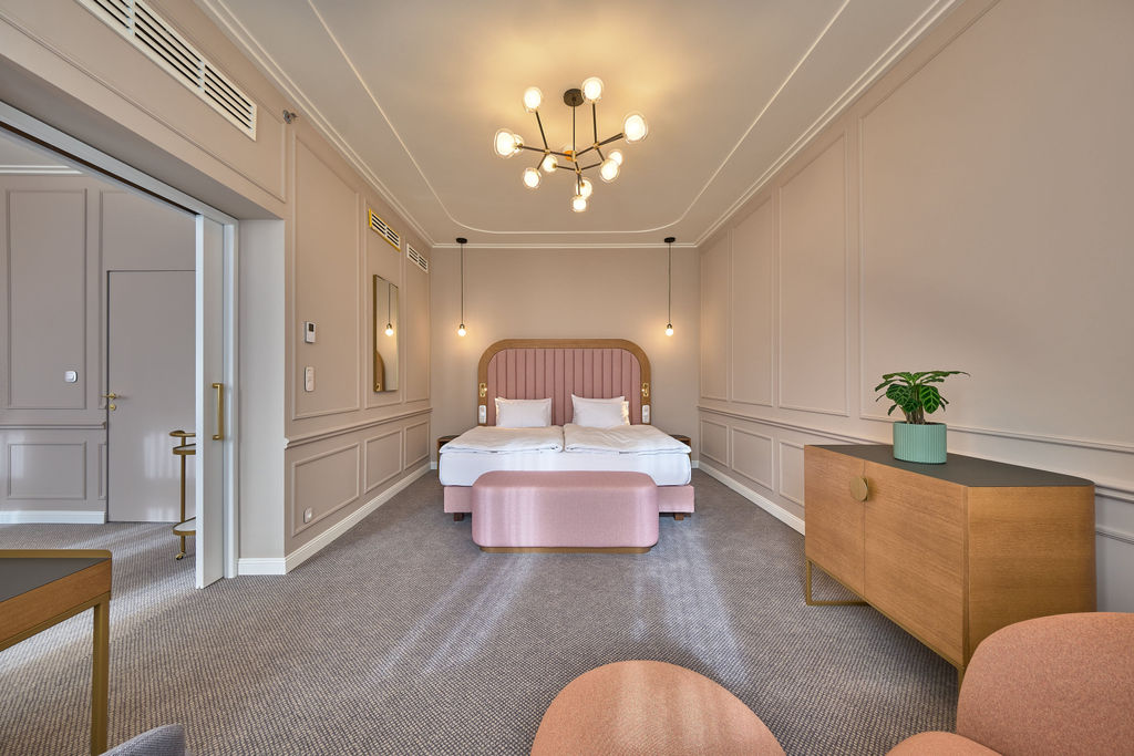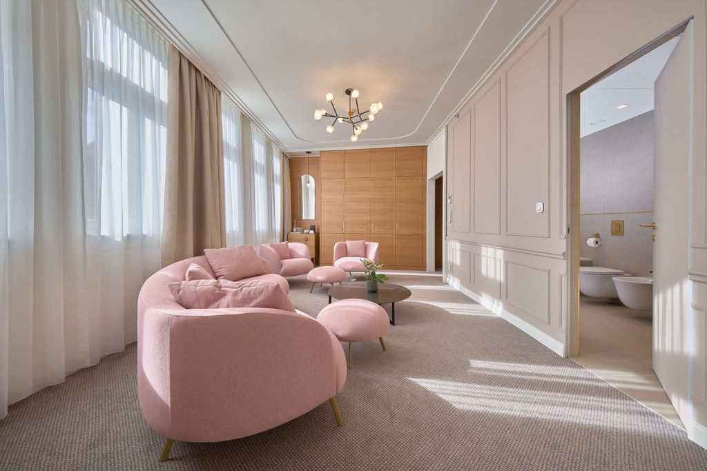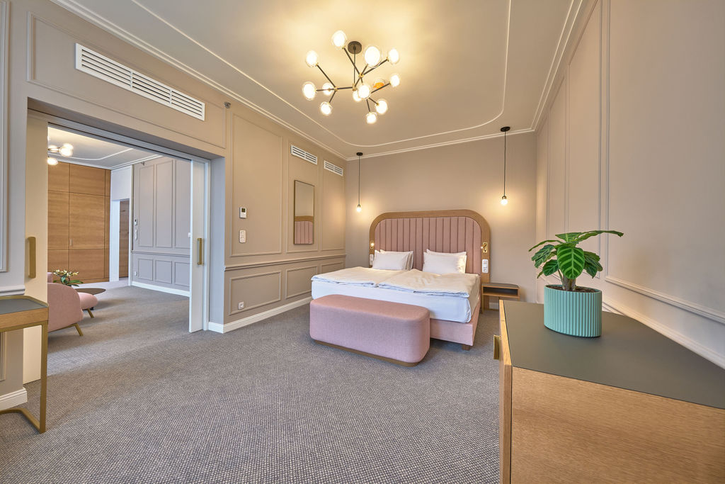 The most exclusive suite at the Palatinus Grand Hotel, combining spacious layout with timeless elegance. The separate living and sleeping areas ensure total comfort – even for extended stays. Rest is elevated by a king-size bed with premium mattress.